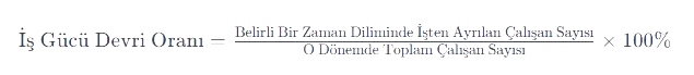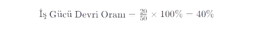 Örneğin, bir şirkette son bir yıl içinde ortalama olarak 50 kişi çalışıyordu ve bu süreçte toplamda 20 kişi işten ayrıldıysa: